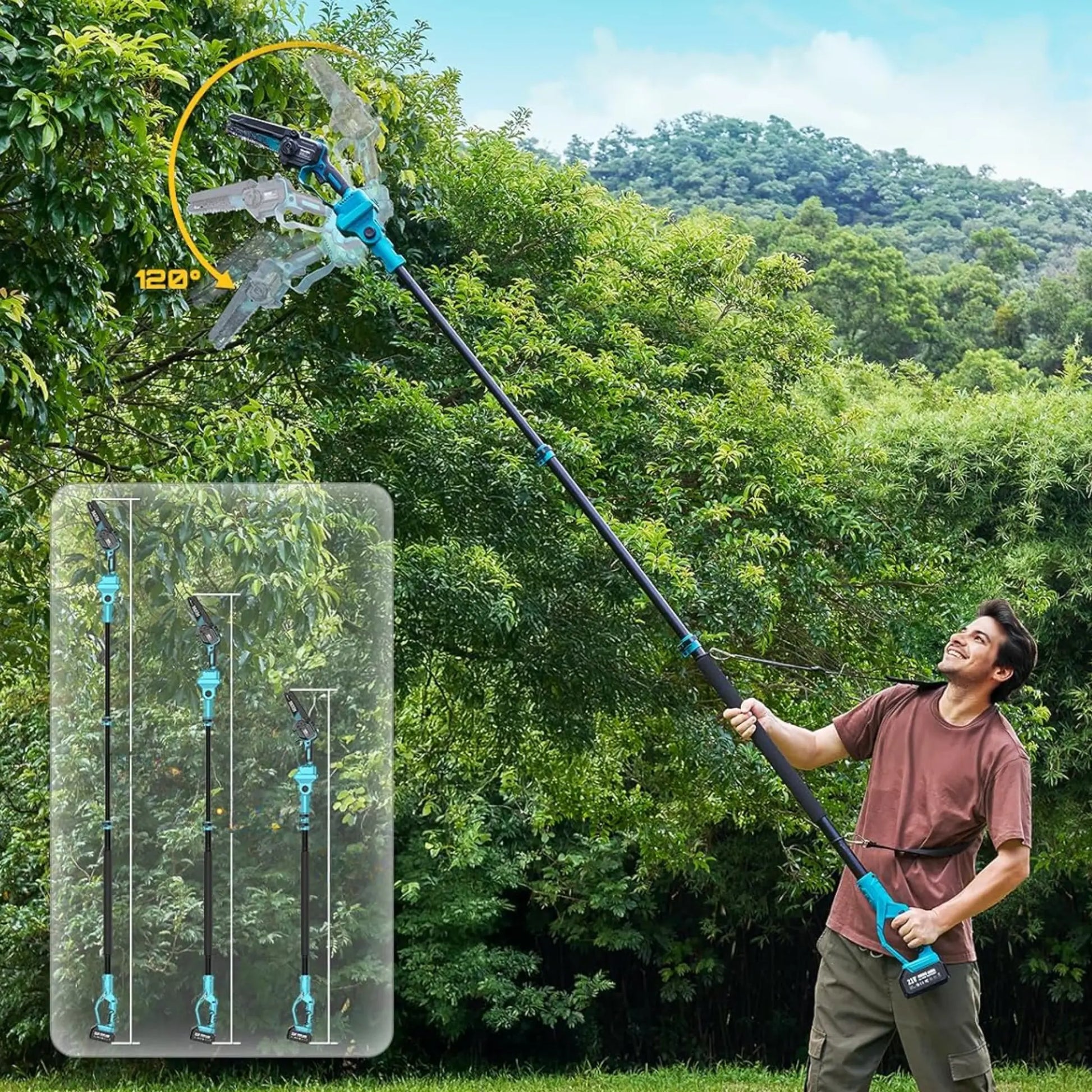 🌳 Prune safely from the ground — reach up to 12ft without ladders